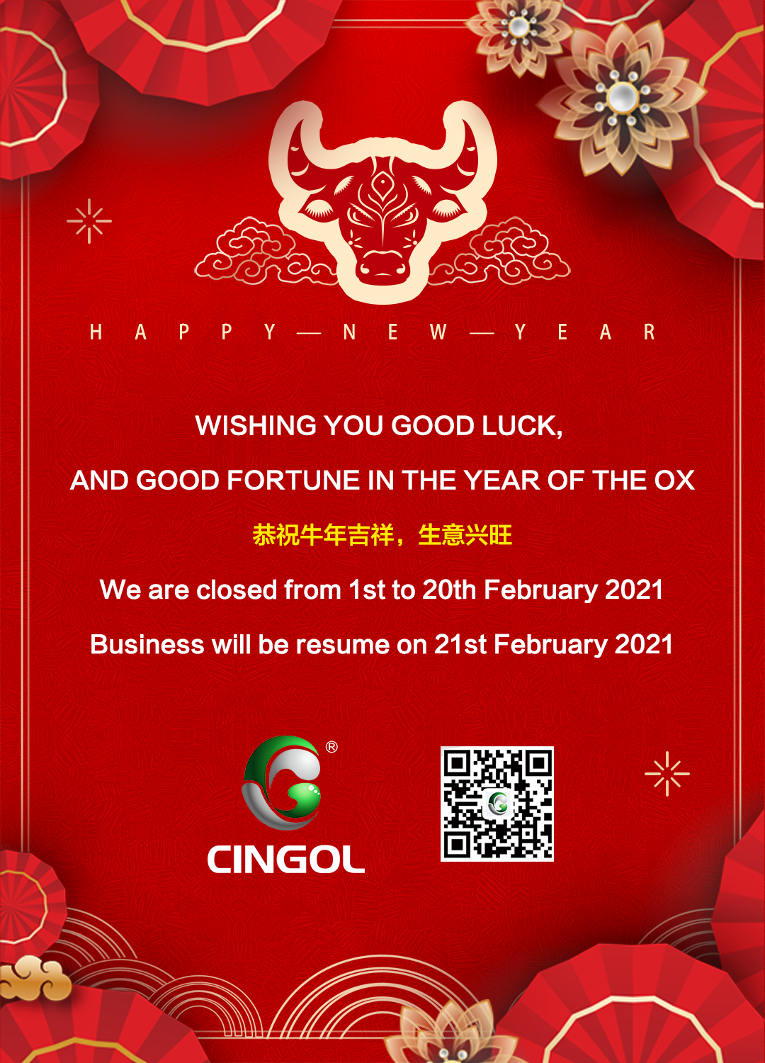 Cingol Wishing You Good Luck in the Year of the OX ,2021