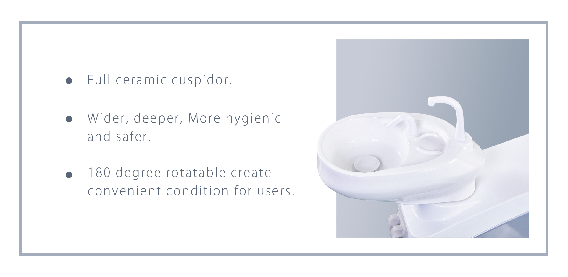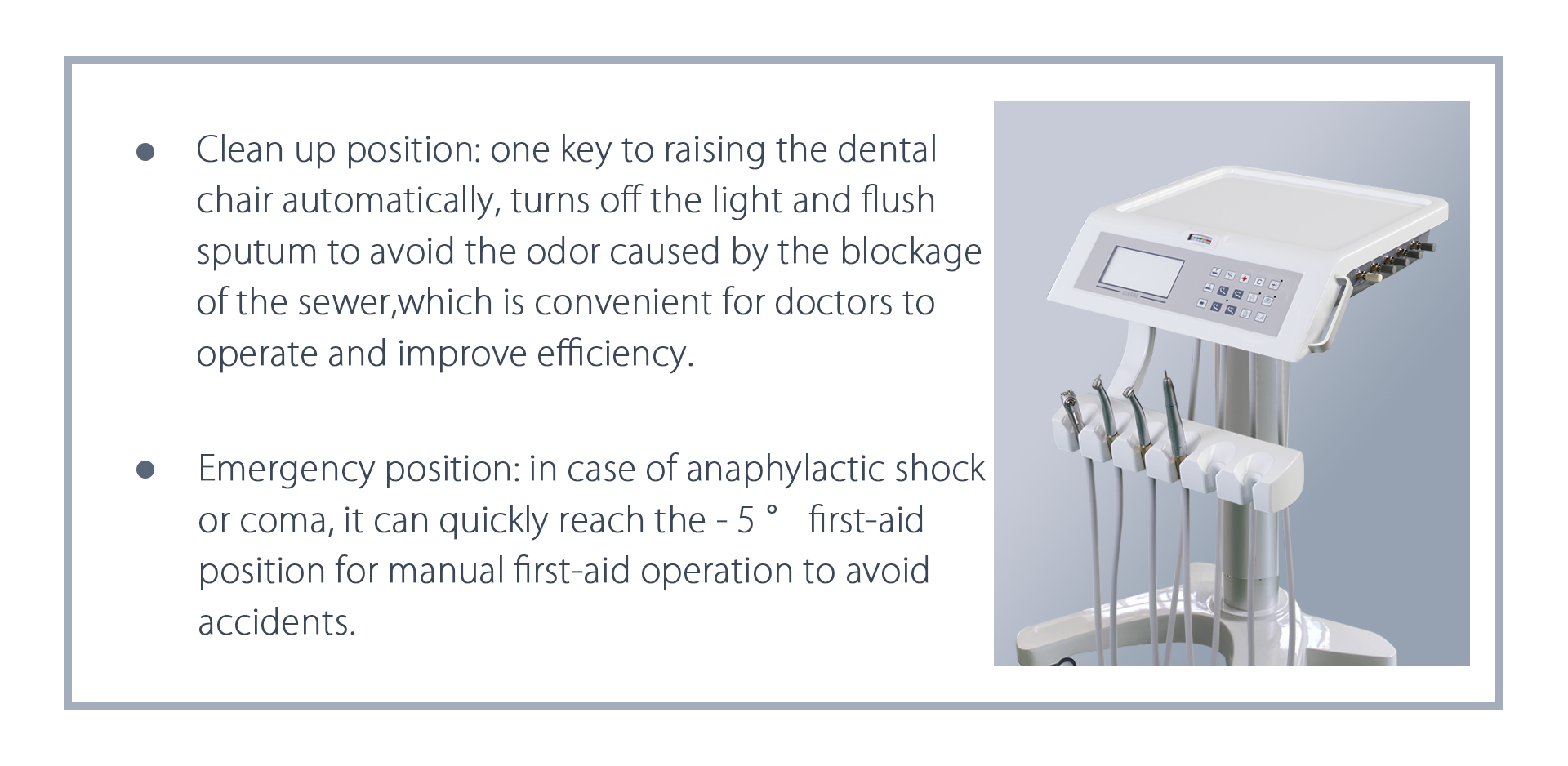 X1 DENTAL Chair is one of the most cost-effective dental units from Cingol dental chairs/dental units series,it features the most common useful clean-up and first-aid position,which helps the dentist to improve work efficiency and keep away of risk of an emergency incident.Built-in music function and ergonomic upholstery cushion,it has maximums the comfort of the patient.