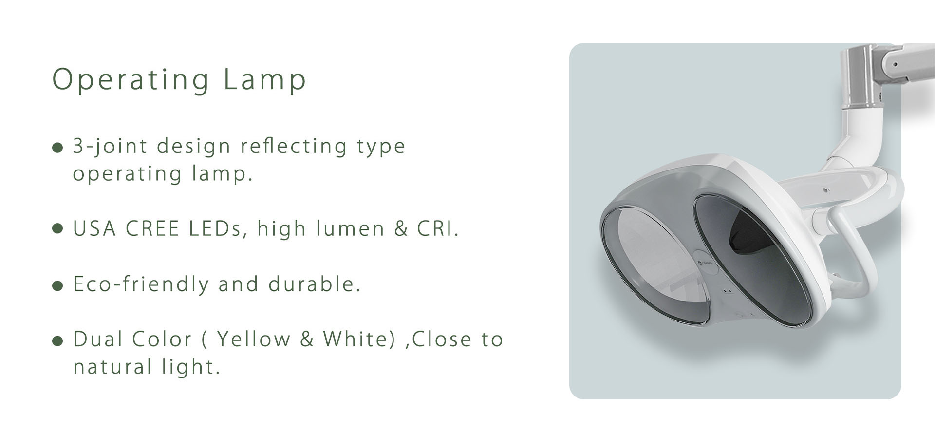 - Dimmable LED Operation Light is shadowless focus,flexible and easy to use.