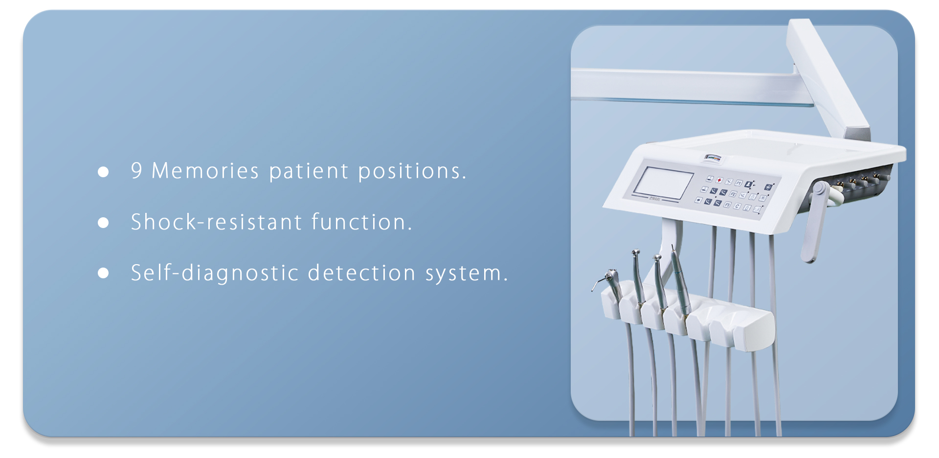 Allows up to three dentists to save their habitual chair positions,efficiency and quality of work.