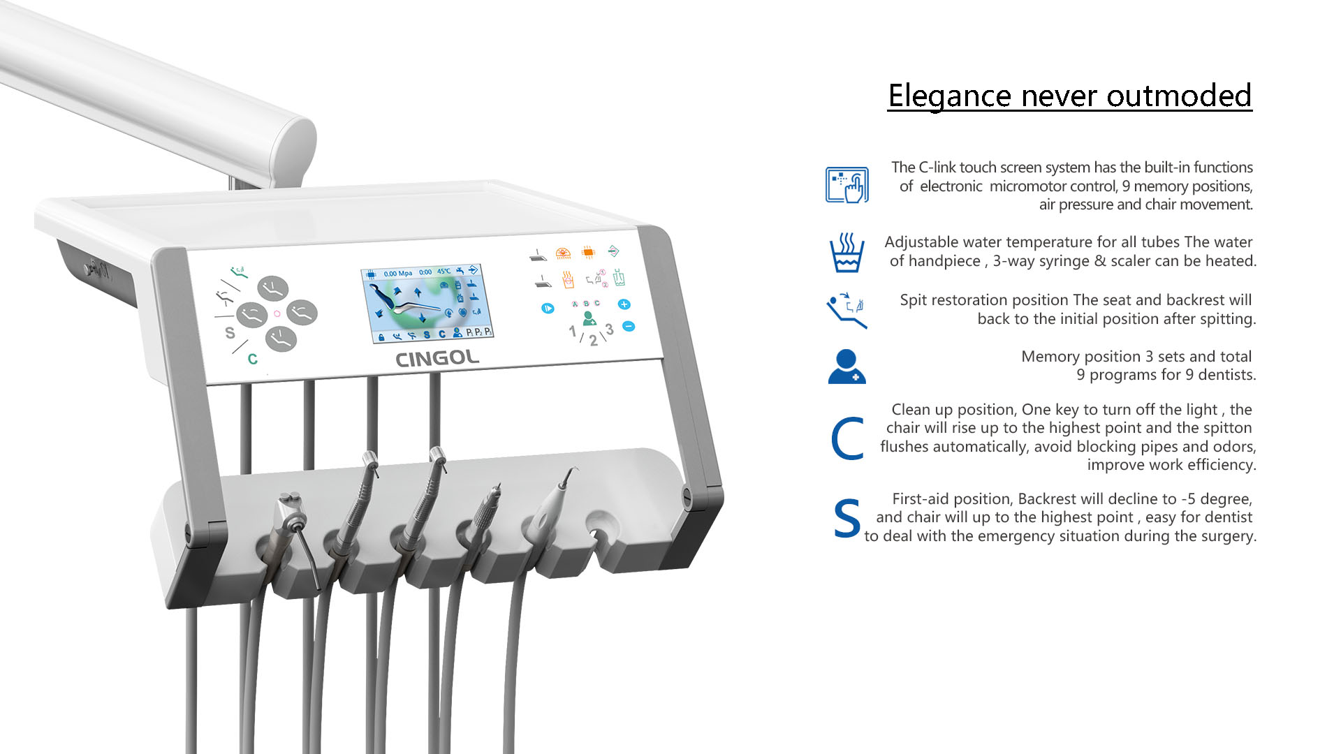 When cuspidor angle turns toward patient,